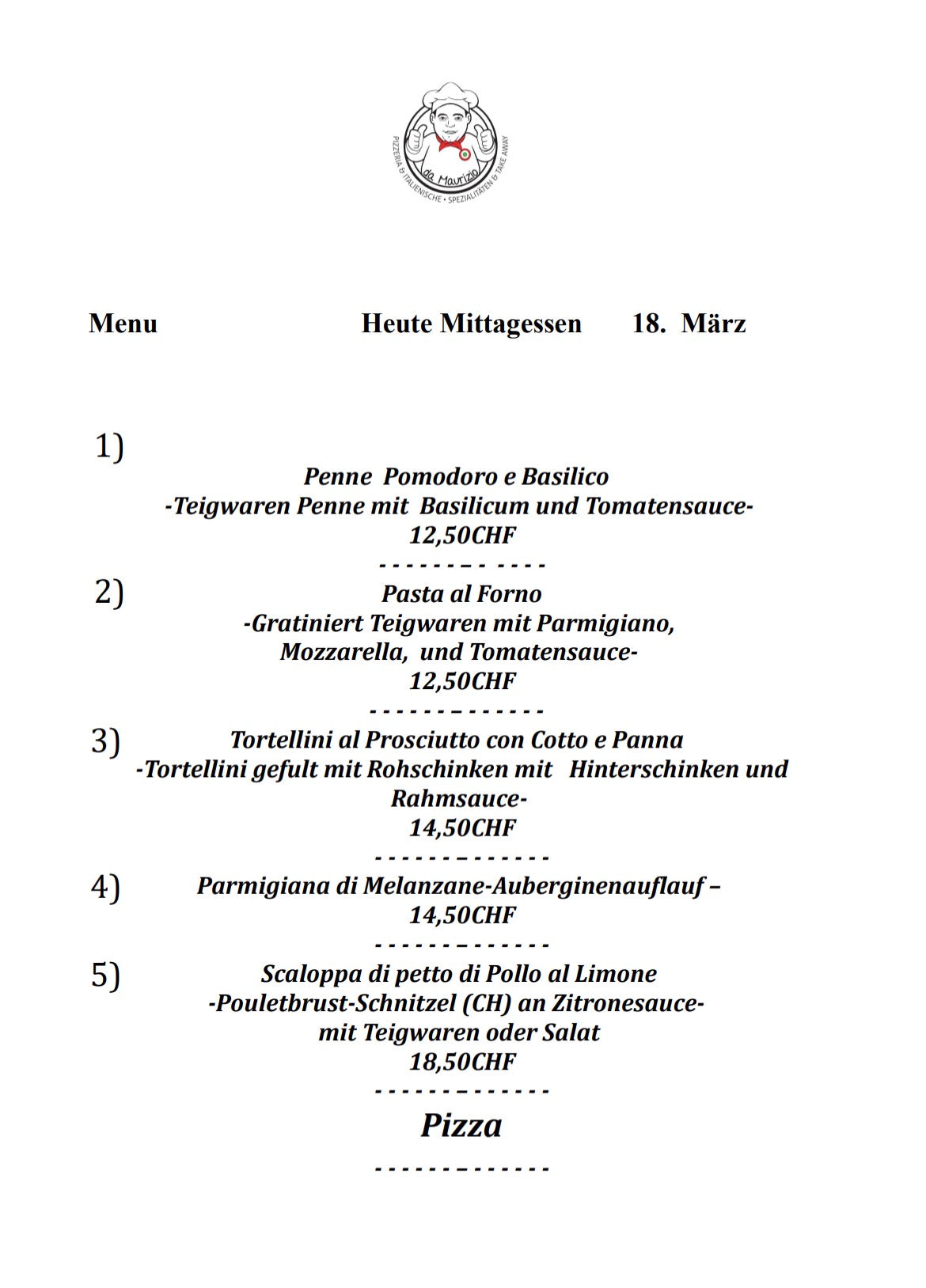 Jedes Mal ein anderes Menü. Besuchen Sie uns jeden Tag, um herauszufinden, was Sie zum Mittagessen essen werden!